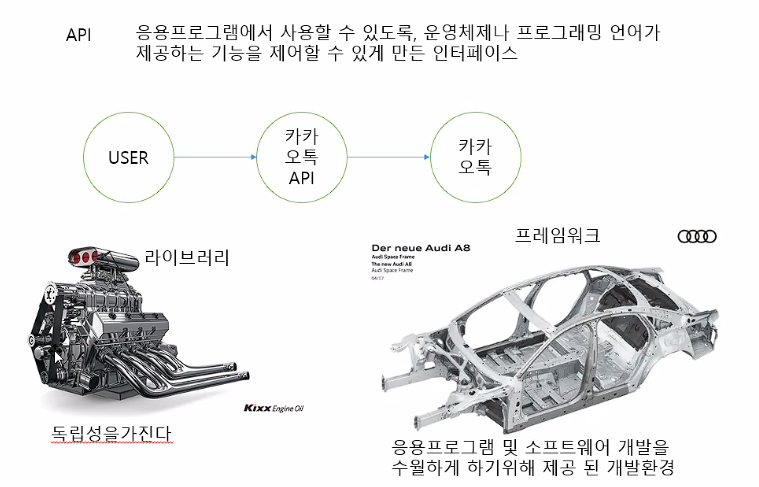 API (도구를 사용하기위한 수단): 어플을 사용하기 위한 약속. 상호작용