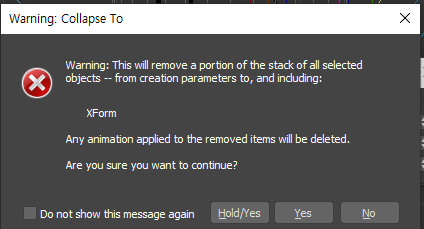 - XForm Modifier가 적용된 상태에서, Modifier Stack에서 Collapse To를 선택하여 변환 값을 고정합니다.