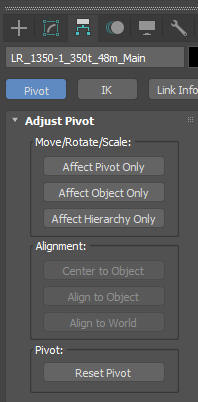 Pivot 패널에서 Affect Pivot Only를 활성화. 해당 옵션을 활성화하면 피벗 포인트만 조정된다.