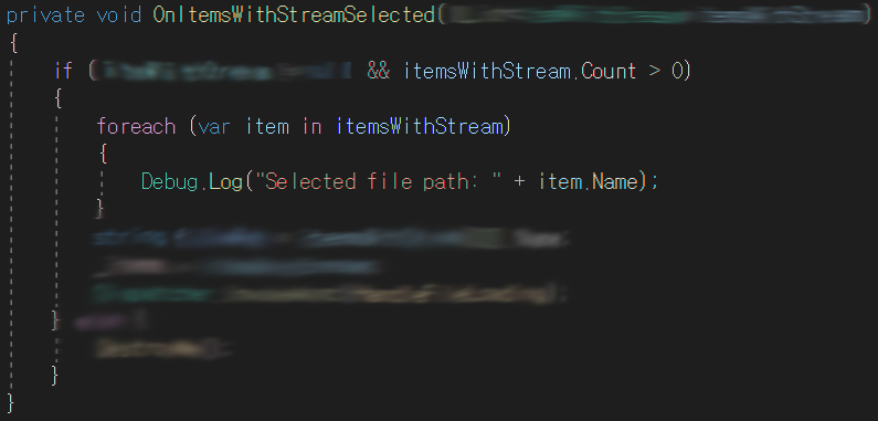 간단한 코드인데 반나절을 헤메었다. StandaloneFileBrowser 라는 패키지도 깔아보고 이미 내포된 기능이라는 것을 깨닫고 어느 부분에서 작동해야 좋을지 코드를 타고타고 가느라 우여곡절을 겪었다