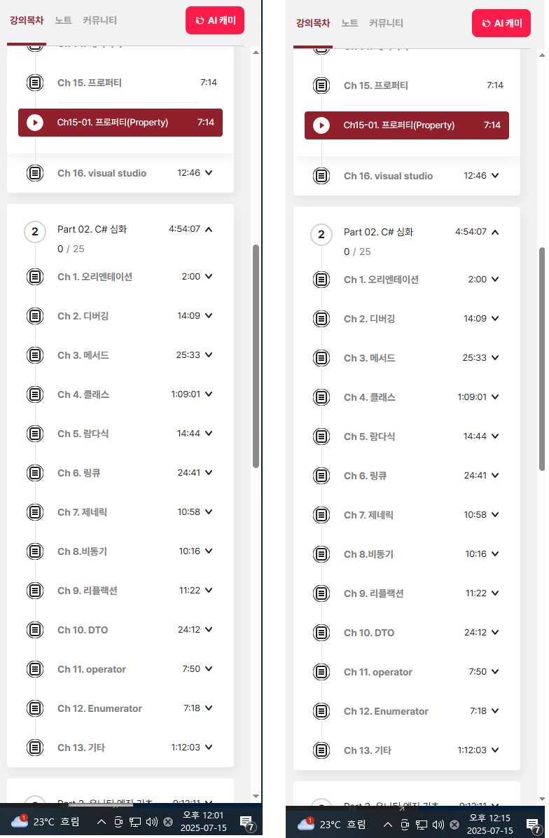 | 16일차 : '한 번에 끝내는 유니티&C# 게임 개발 초격차 패키지' 강의 후기 (2) | 2025.07.16 |