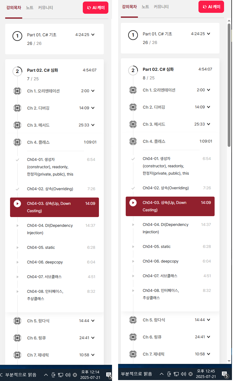 | 18일차 : '한 번에 끝내는 유니티&C# 게임 개발 초격차 패키지' 강의 후기 (2) | 2025.07.18 |