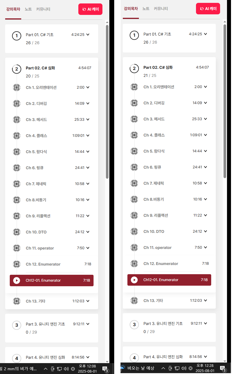 | 34일차 : '한 번에 끝내는 유니티&C# 게임 개발 초격차 패키지' 강의 후기 (4) | 2025.08.03 |