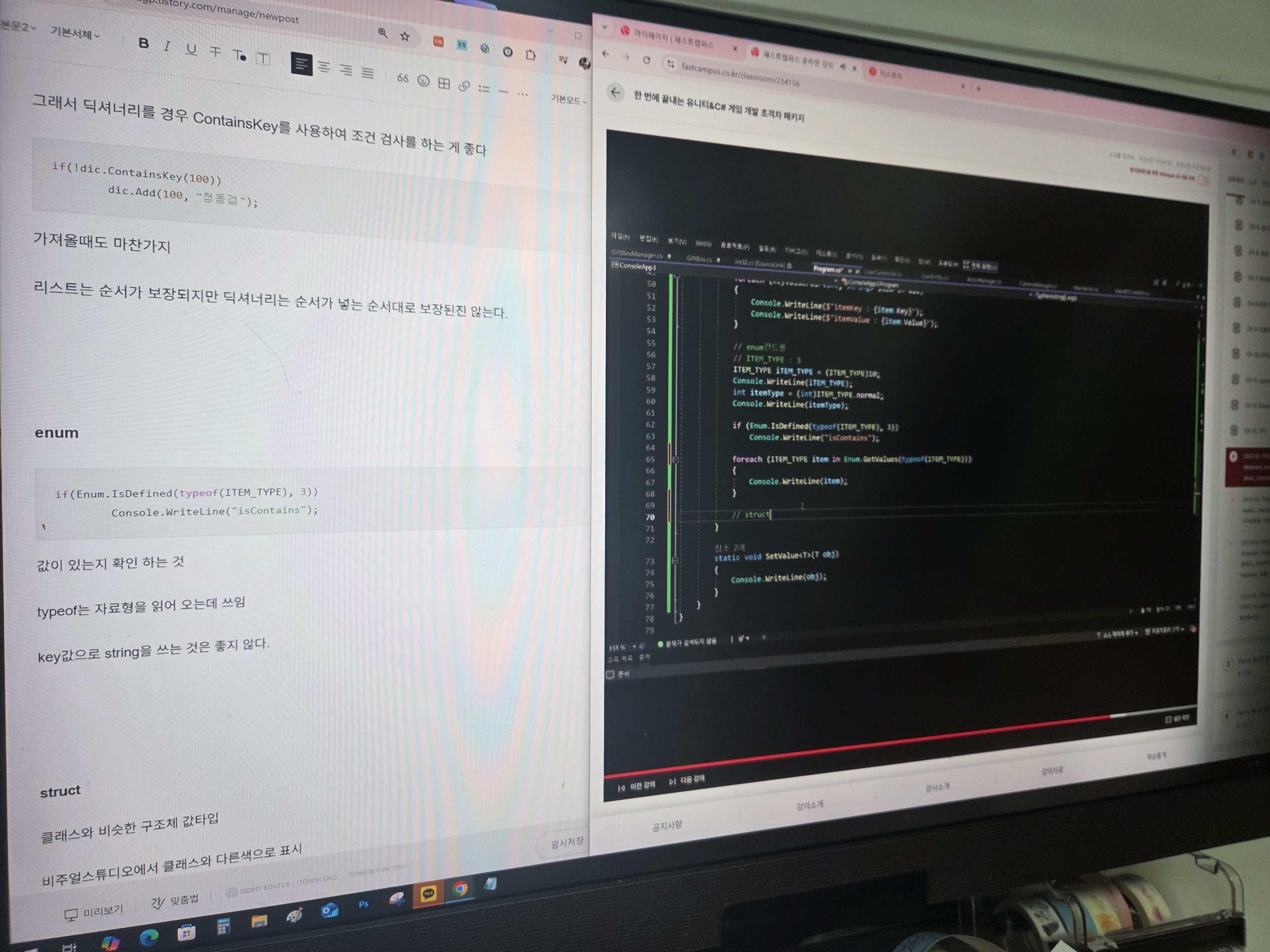 강의는 잘 들었고 object, dictionary, enum컨트롤의 정의와 설명이 조금 부족했던 struct, consolas에 대해 더 알아보기로 했다.