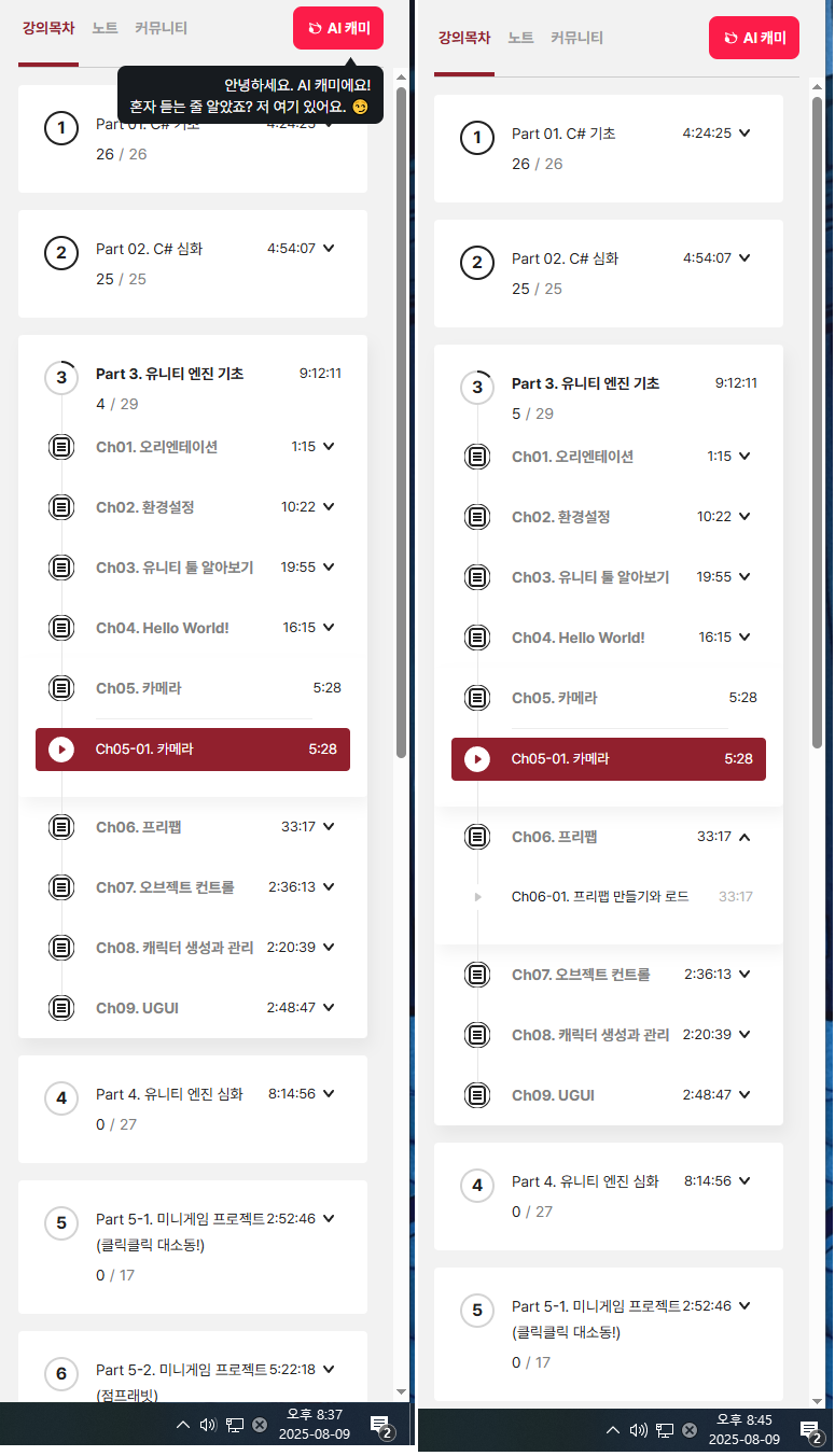 | 39일차 : '한 번에 끝내는 유니티&C# 게임 개발 초격차 패키지' 강의 후기 (6) | 2025.08.08 |