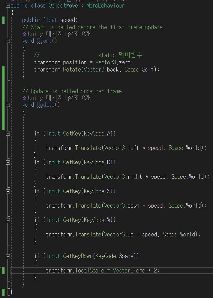 2023년 8월 18일 금요일 Unity - 기초 오브젝트 움직이기와 축, Transform 컴포넌트(Translate, Rotate함수) 본문