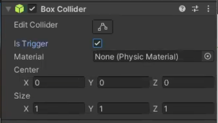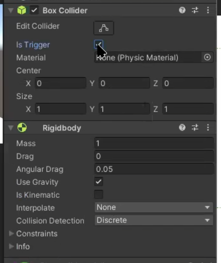 다 체크되어있으면 리지드바디 키네마틱 트리거 콜라이더
