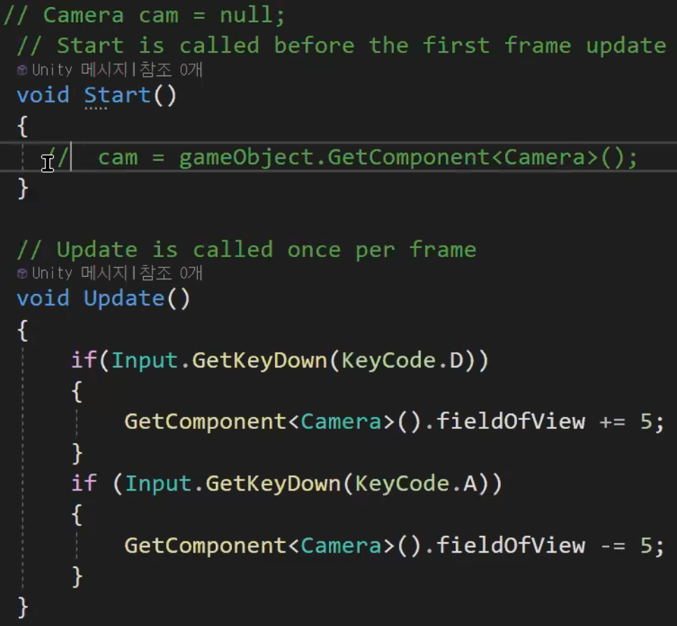 GetComponent<BoxCollider>();는 앞에 gameObjet.GetComponent<BoxCollider>();가 생략되어있다.