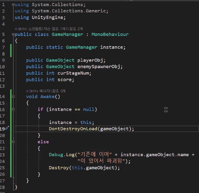 *유니티는 늦게만든 스타트부터 먼저 실행됨