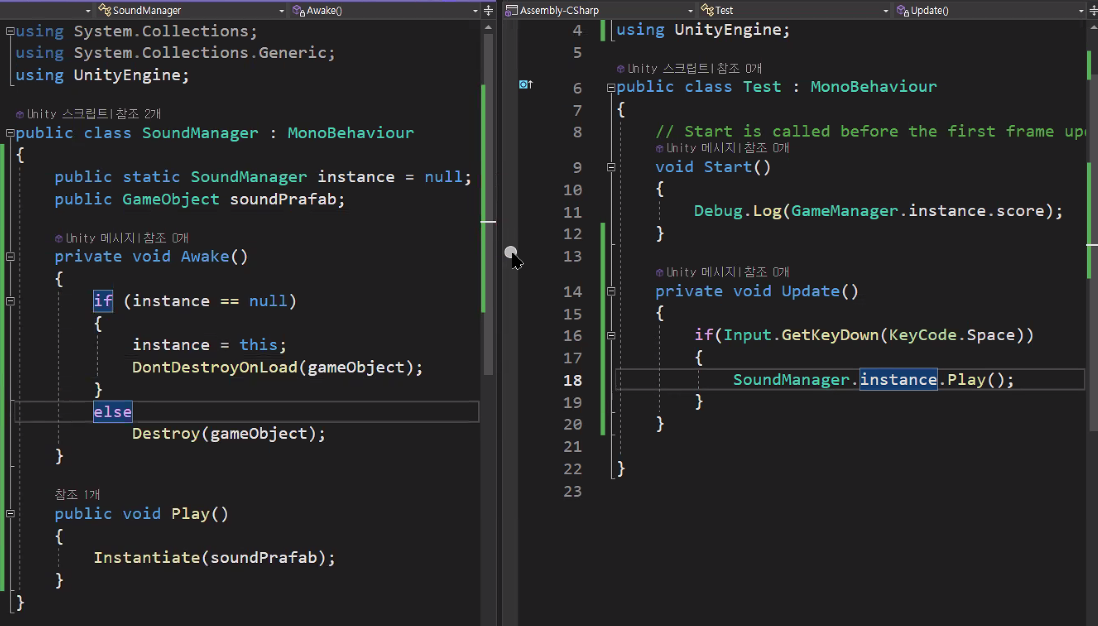 Unity C# 스태틱과 싱글톤, 인터페이스 본문