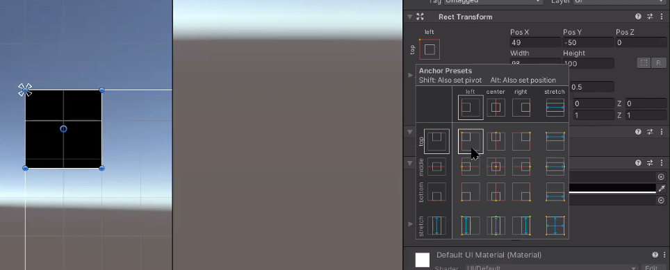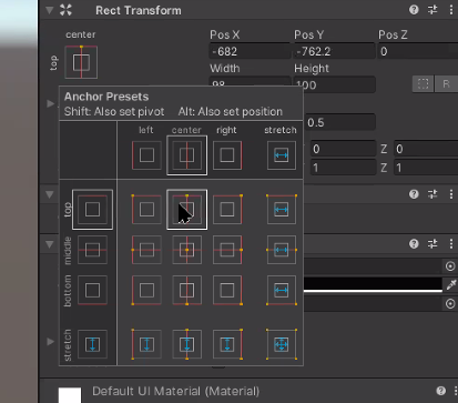 앵커는 고정된 위치 피벗은 UI중심점